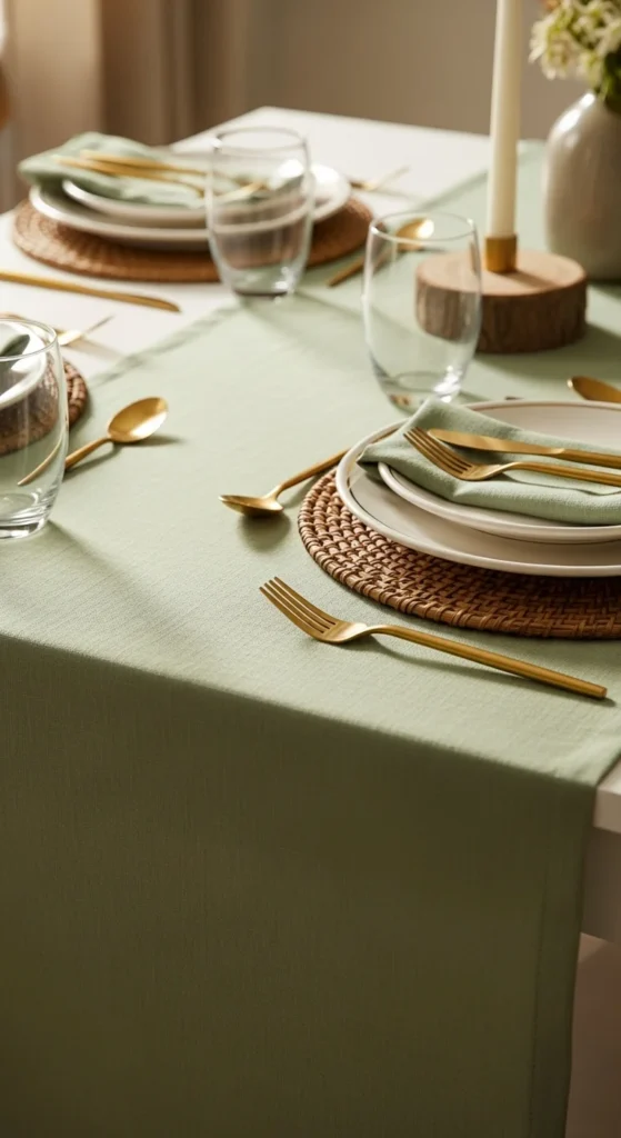 2. Green Linen Table Runner Setup