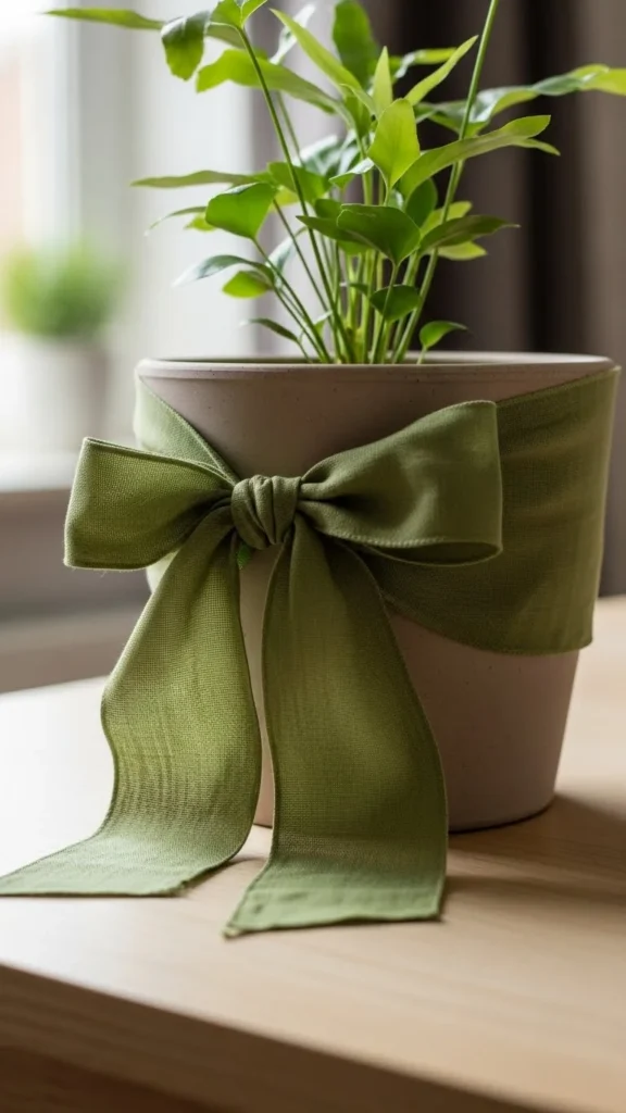 - Wrap ribbon around pot.