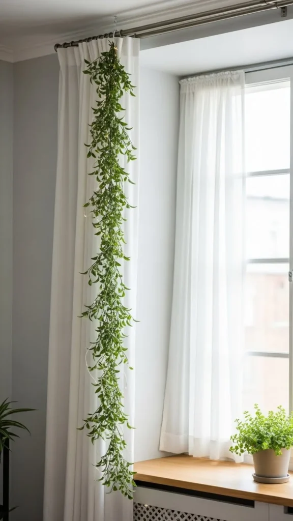 8. Vertical Garland on Curtain Rod