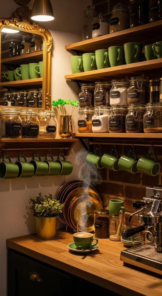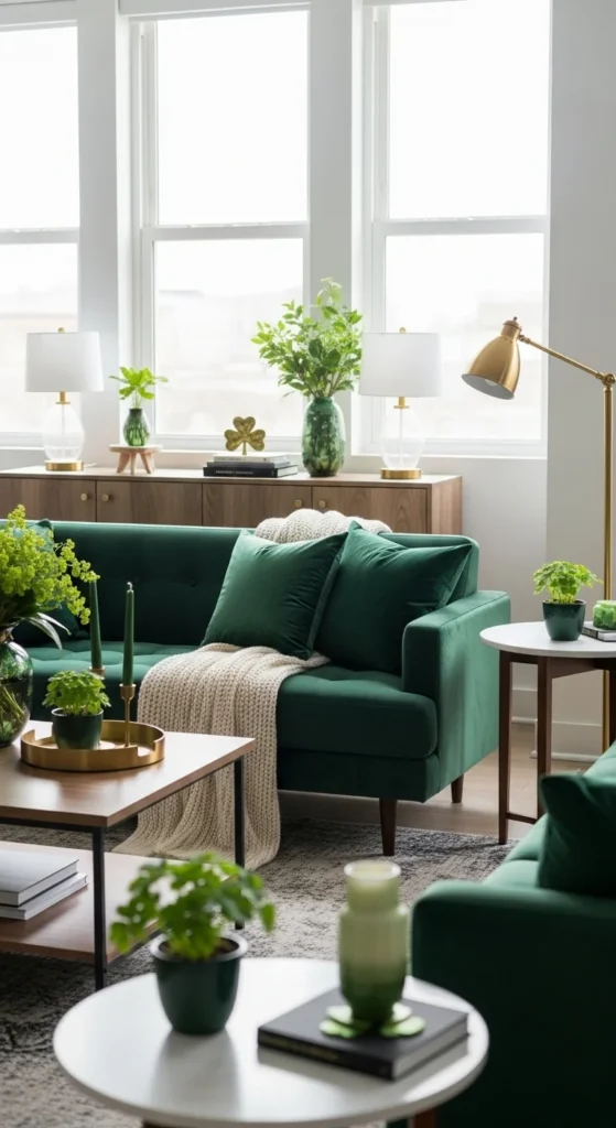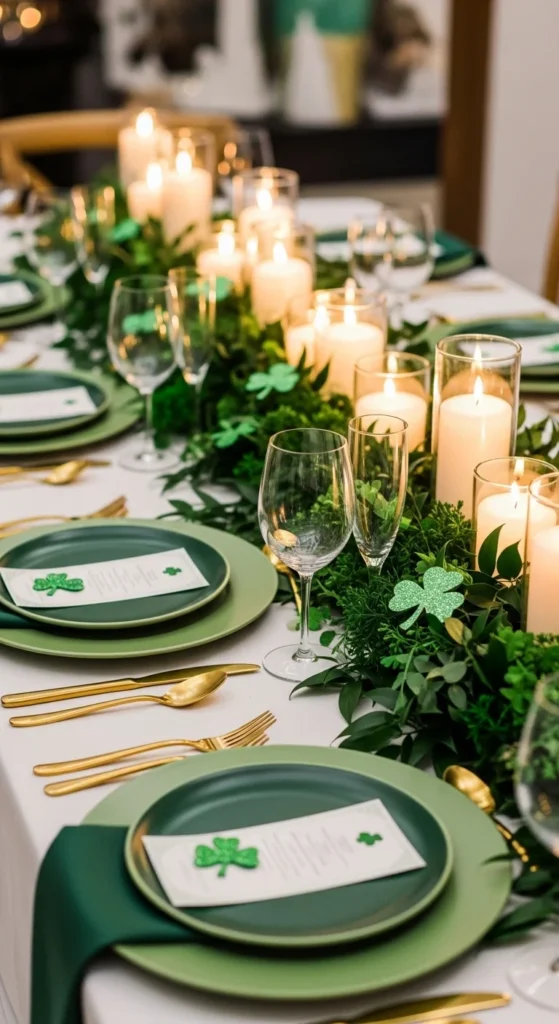 This final décor “recipe” combines everything that makes St. Patrick’s Day stylish — green tones, gold accents, layers, texture, and warm glowing ambiance.