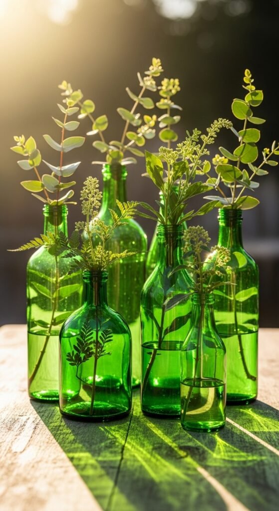 This décor “recipe” makes hosting feel effortless and chic. The cart becomes a portable green-and-gold décor statement.