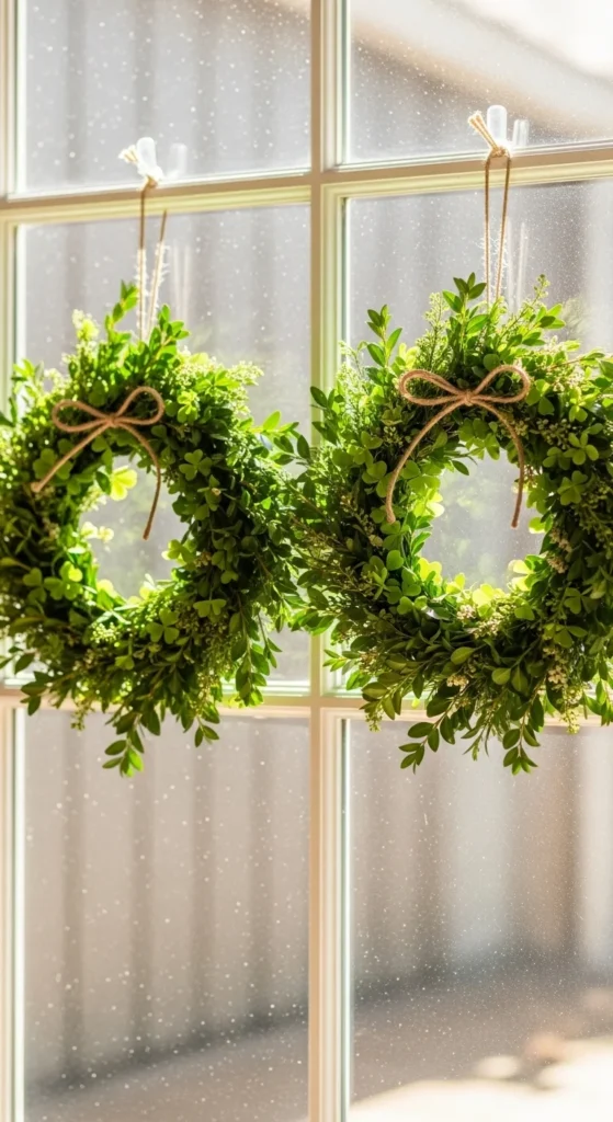 These matching wreaths bring balance and charm to window spaces, offering a fresh, airy feel.
