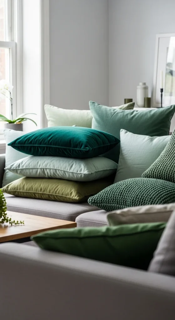 This “recipe” is perfect for decorators who prefer subtler holiday nods. Mixing multiple green tones creates richness without overwhelming your space and instantly refreshes any seating area.
