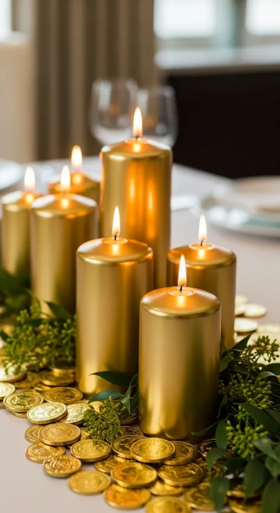 This shimmering display catches the light beautifully and makes your dining table feel festive without going over the top. The coins add a playful touch that still looks elegant.