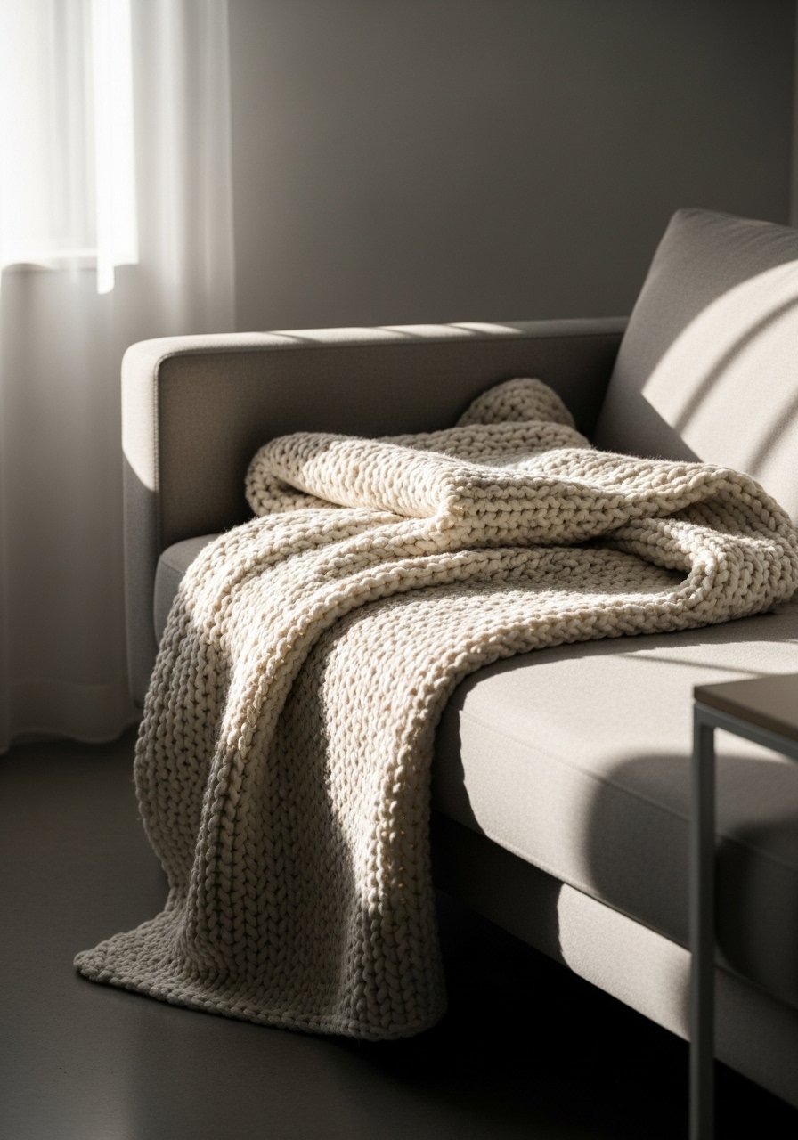 I switched to chunky throws six months ago and the sofa stopped looking sterile. Minimalist rooms need one large tactile piece to avoid feeling clinical. Keep budget $30 to $90. A common misstep is buying thin throws that defeat the point. Choose 50×60-inch chunky knits for sofas, not scarves. I use this chunky knit throw and avoid synthetic fakes that flatten after washing. In tiny apartments use a smaller throw so seating doesn't feel crowded.
