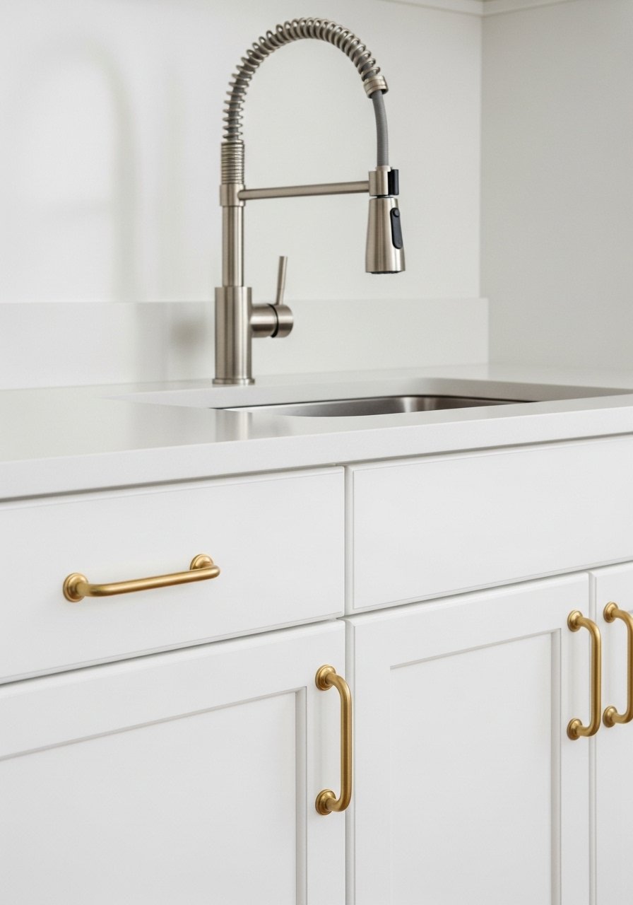 I stopped matching metals and started mixing warm brass knobs with brushed nickel faucets. It feels layered and up-to-date. I swapped cabinet pulls with mixed metal drawer pulls for a subtle update. Mistake to avoid: too many competing finishes — pick one dominant metal and one accent. Mixed metals add depth to white cabinetry and pair well with warm wood counters.